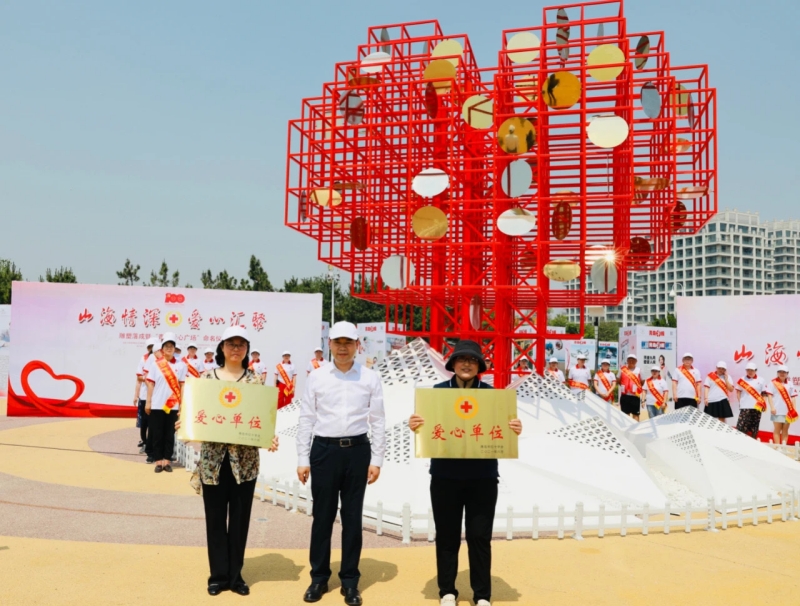 6月22日,“山海情深·愛(ài)心匯聚”雕塑落成暨青島愛(ài)心廣場(chǎng)命名儀式在西海岸新區(qū)城市陽(yáng)臺(tái)景區(qū)成功舉行。青島市紅十字會(huì)、新區(qū)工委、青島市衛(wèi)健委、青島市自然資源和規(guī)劃局、中國(guó)雕塑院青島分院、青島大學(xué)醫(yī)學(xué)部、青島黃發(fā)集團(tuán)、青島城運(yùn)控股集團(tuán)有限公司等領(lǐng)導(dǎo)嘉賓、雕塑設(shè)計(jì)者以及各區(qū)市紅十字會(huì)、新區(qū)有關(guān)部門(mén)、全市造血干細(xì)胞捐獻(xiàn)者代表和新區(qū)紅十字志愿者代表共計(jì)200余人參加儀式。儀式上,黃發(fā)集團(tuán)被授予愛(ài)心企業(yè)榮譽(yù)獎(jiǎng)牌。